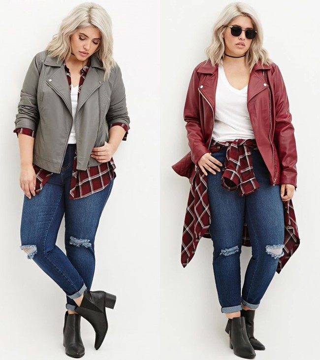 Вопрос с чем носить косуху полным женщинам решается через вертикальные линии: прямые брюки, удлиненные туники, платья А-силуэта формируют гармоничную композицию с женской вещью. Такая одежда составляет базу гардероба.