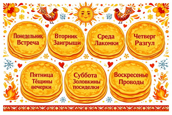 Традиционно масленичная неделя делится на два периода: Узкая Масленица (первые три дня) и Широкая Масленица (с четверга по воскресенье). В 2026 году это разделение сохраняет свою актуальность, особенно при составлении сценариев мероприятий с нарастающей интенсивностью.